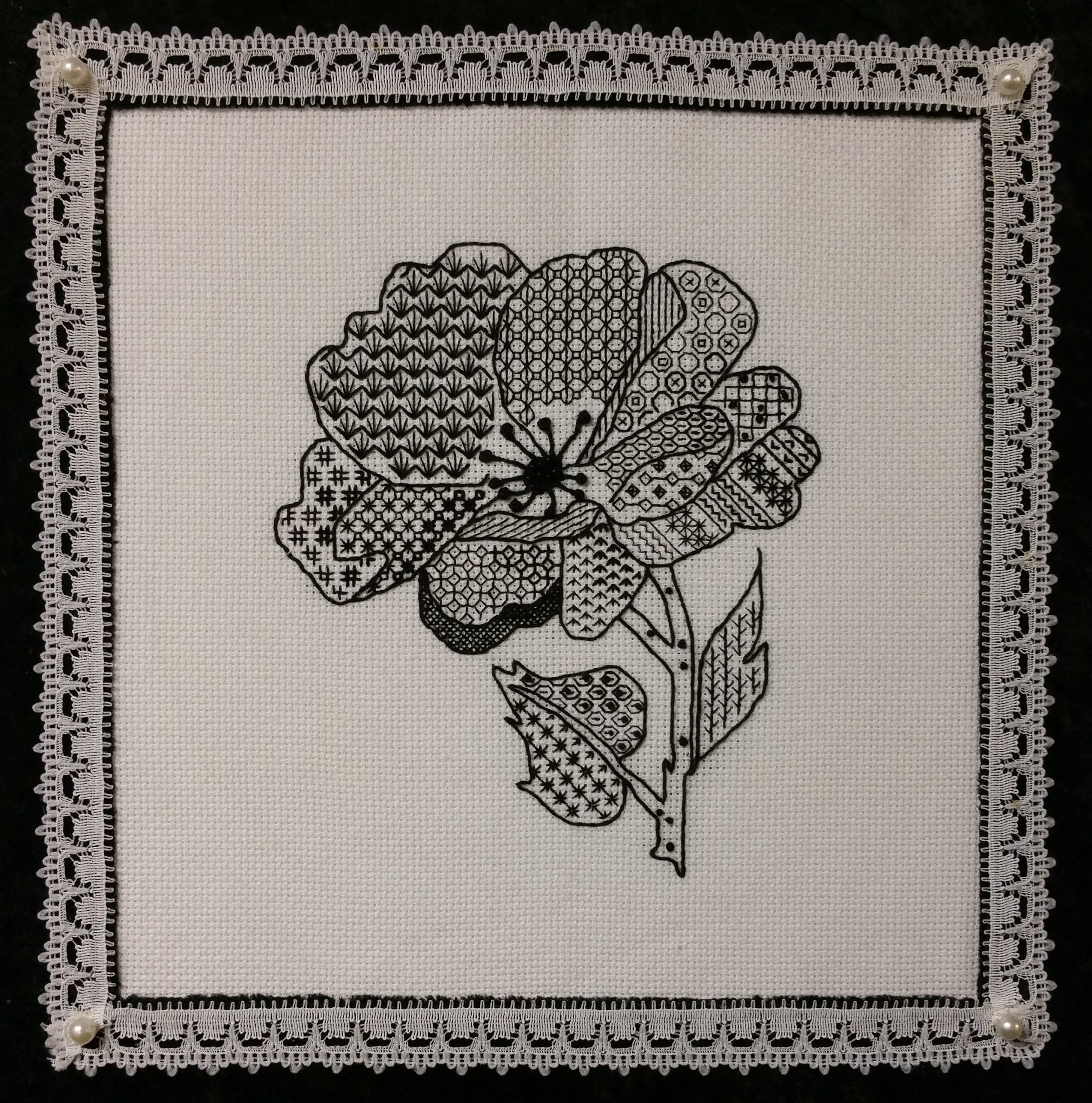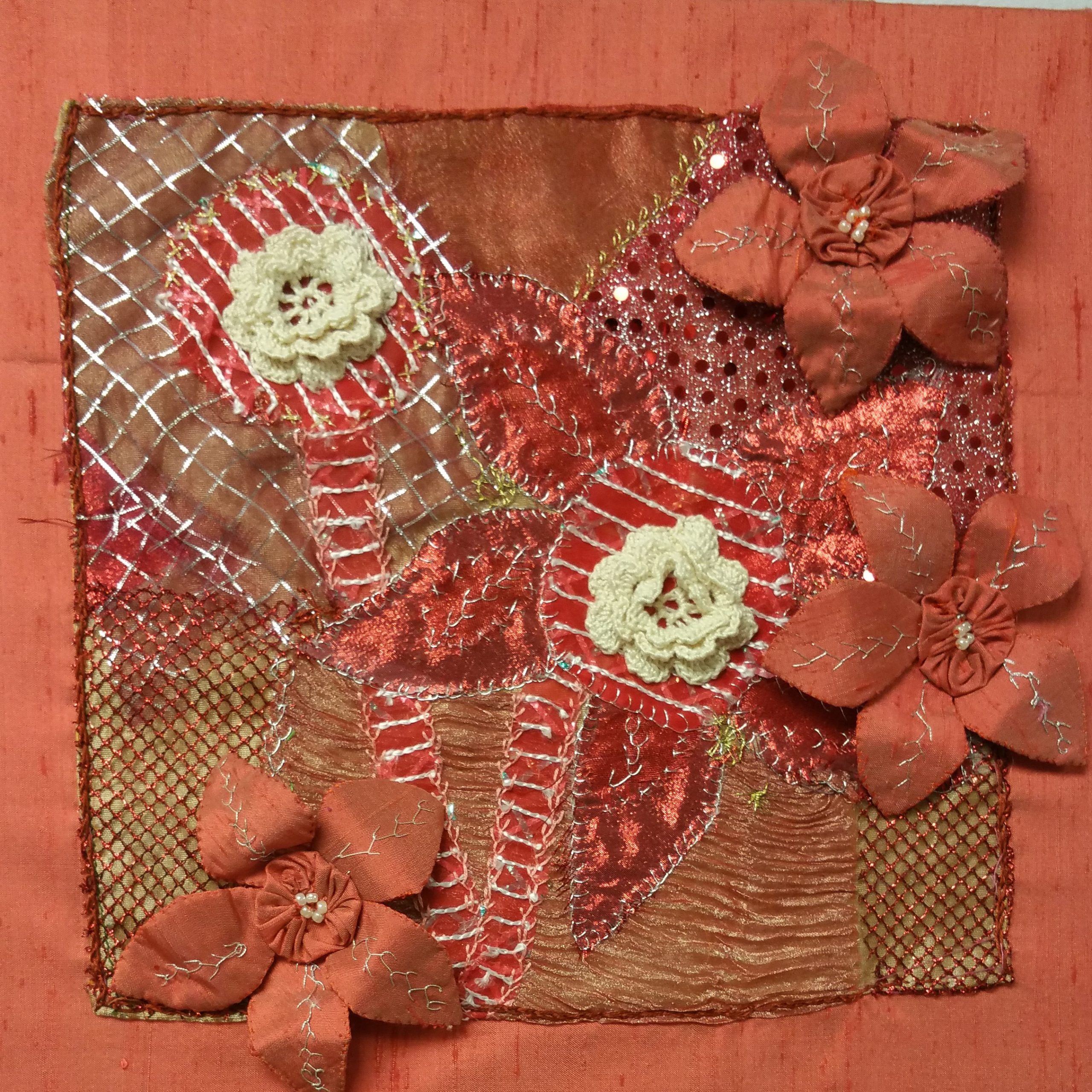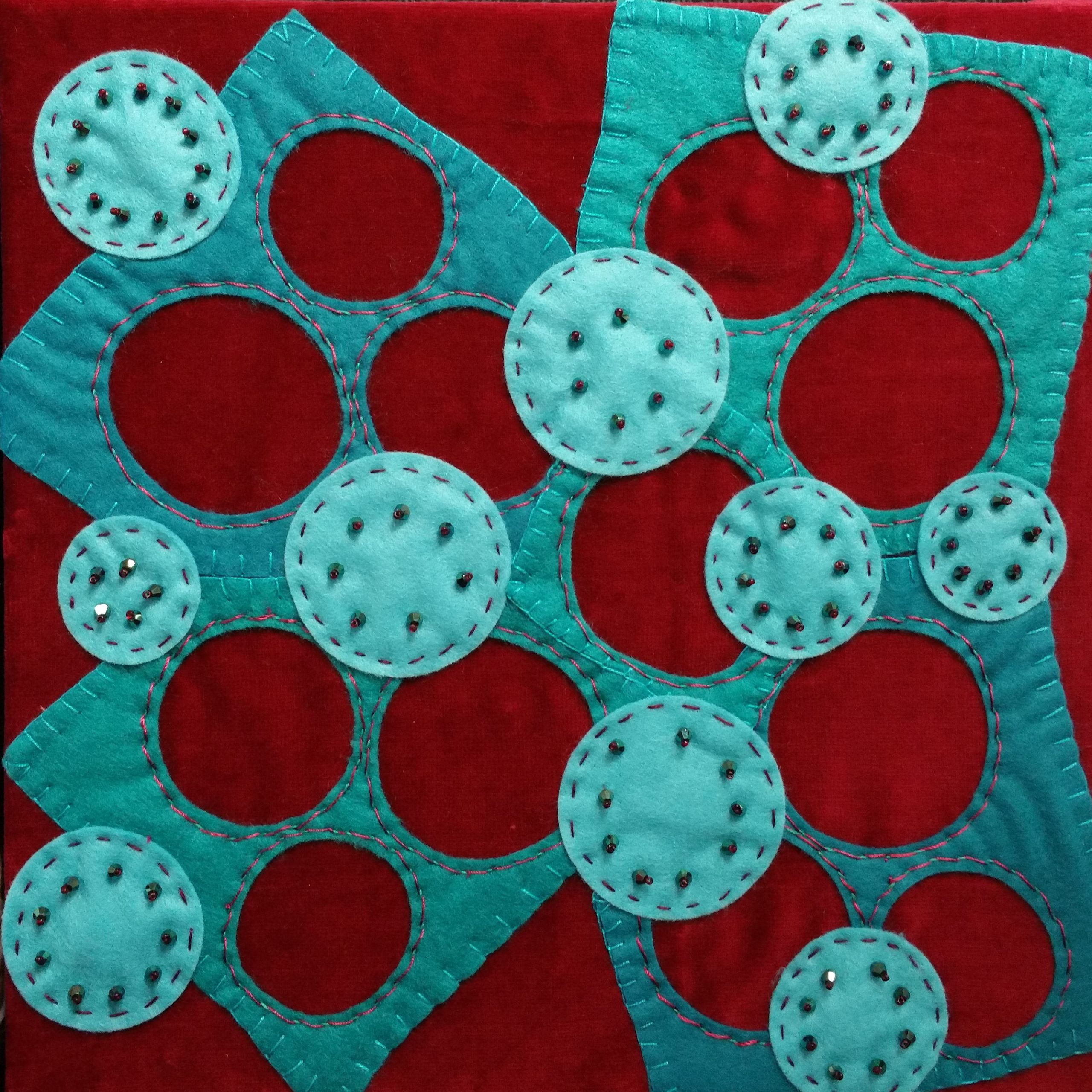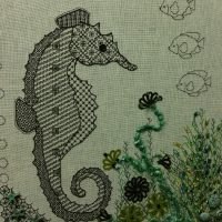 The transition from Embroiderers Guild branch to independent stitch group coincided with the lockdowns of 2020 and 2021. We held some of our Tuesday meetings via Zoom, but many members did not find this easy or relaxing, so some projects were devised to help to keep a sense of connection between the group while we couldn’t meet in person.