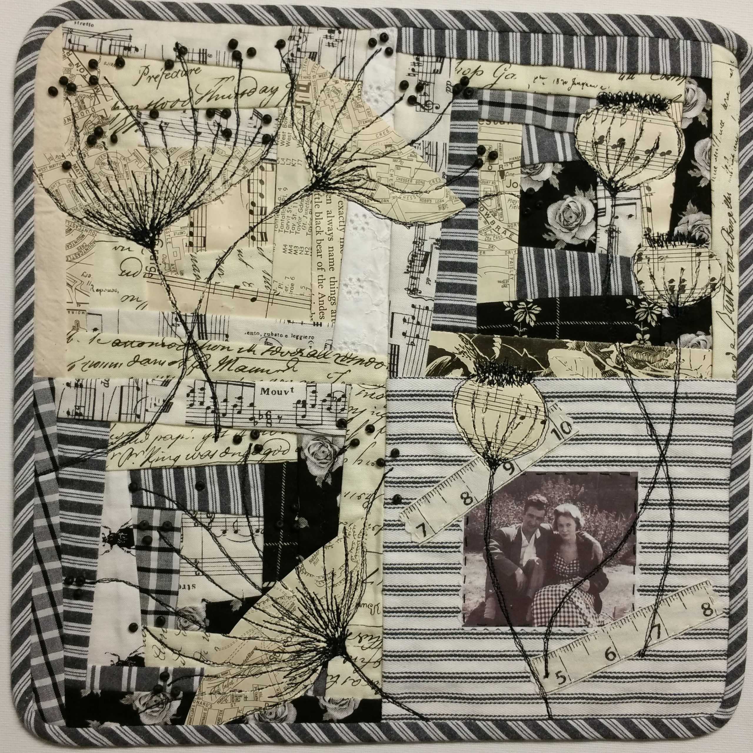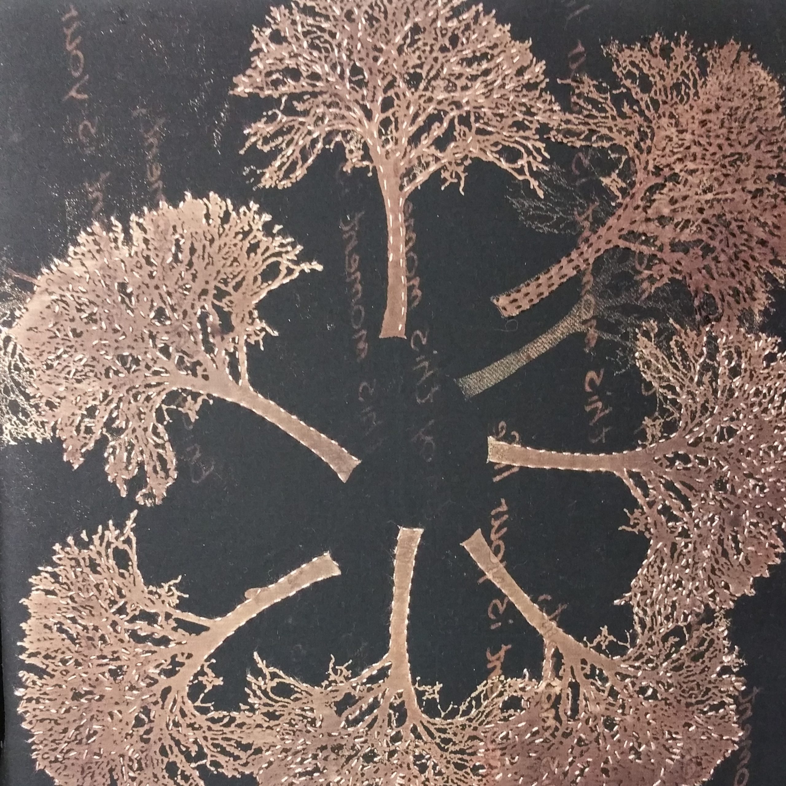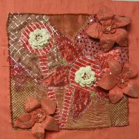 This embroidered book was a celebration of the ‘stitch journey’ of individual members and of the group. The front cover was designed and stitched by Cobi Erskine. Individual pages were stitched by members (the gallery may take a few moments to open, then the thumbnail photos should enlarge if you click on them).