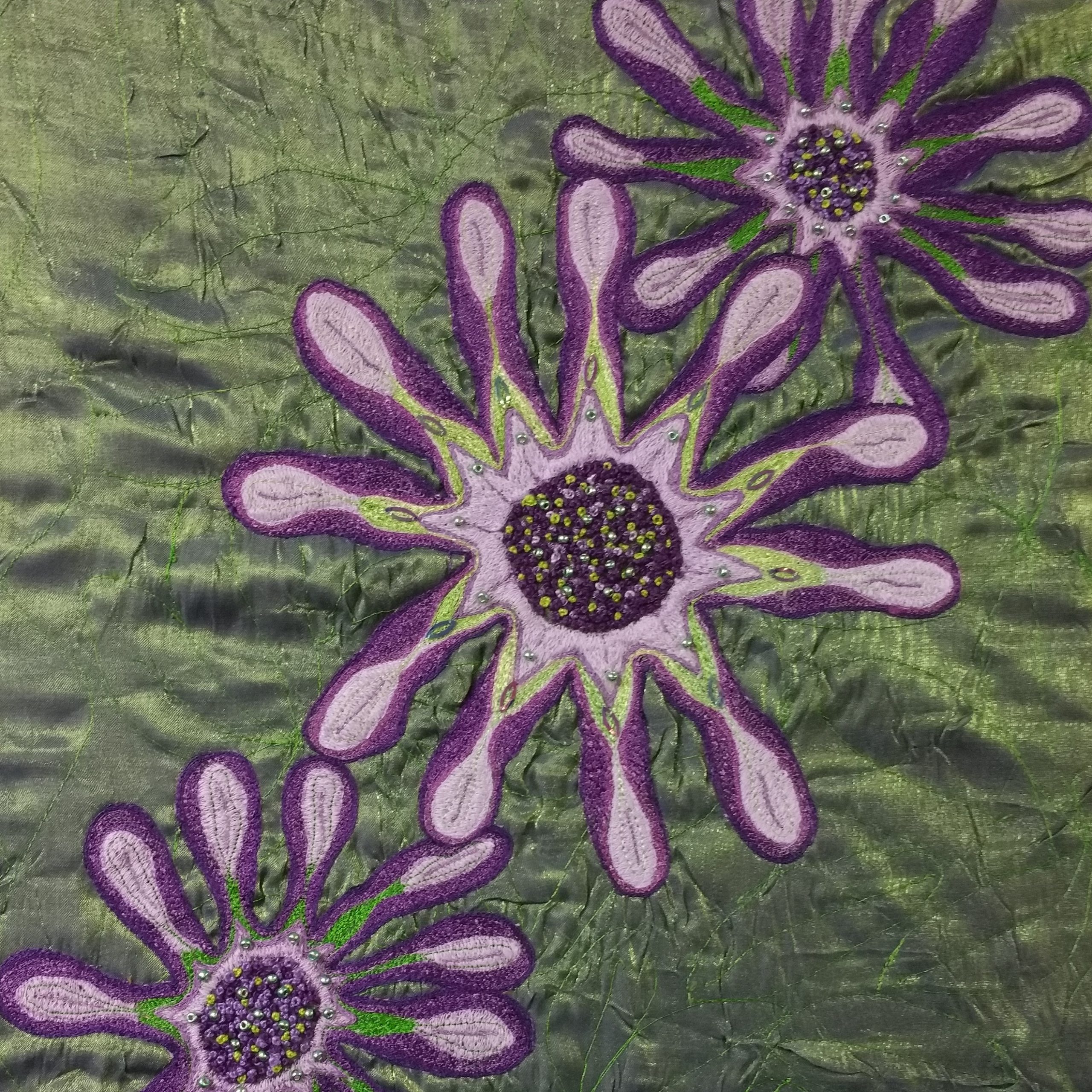 When the group took part in the Worthing Arts Trail, this turned into an opportunity to create a local forum with the focus on textile arts. This was an umbrella group that many of our members took part in, and led to an annual exhibition named ‘Kaleidoscope’ at the Heene Community Centre. Later on it led to a Facebook group called Textile Arts Forum which ran for a number of years, which was a vehicle to share all sorts of stitch and textile-related images and ideas.