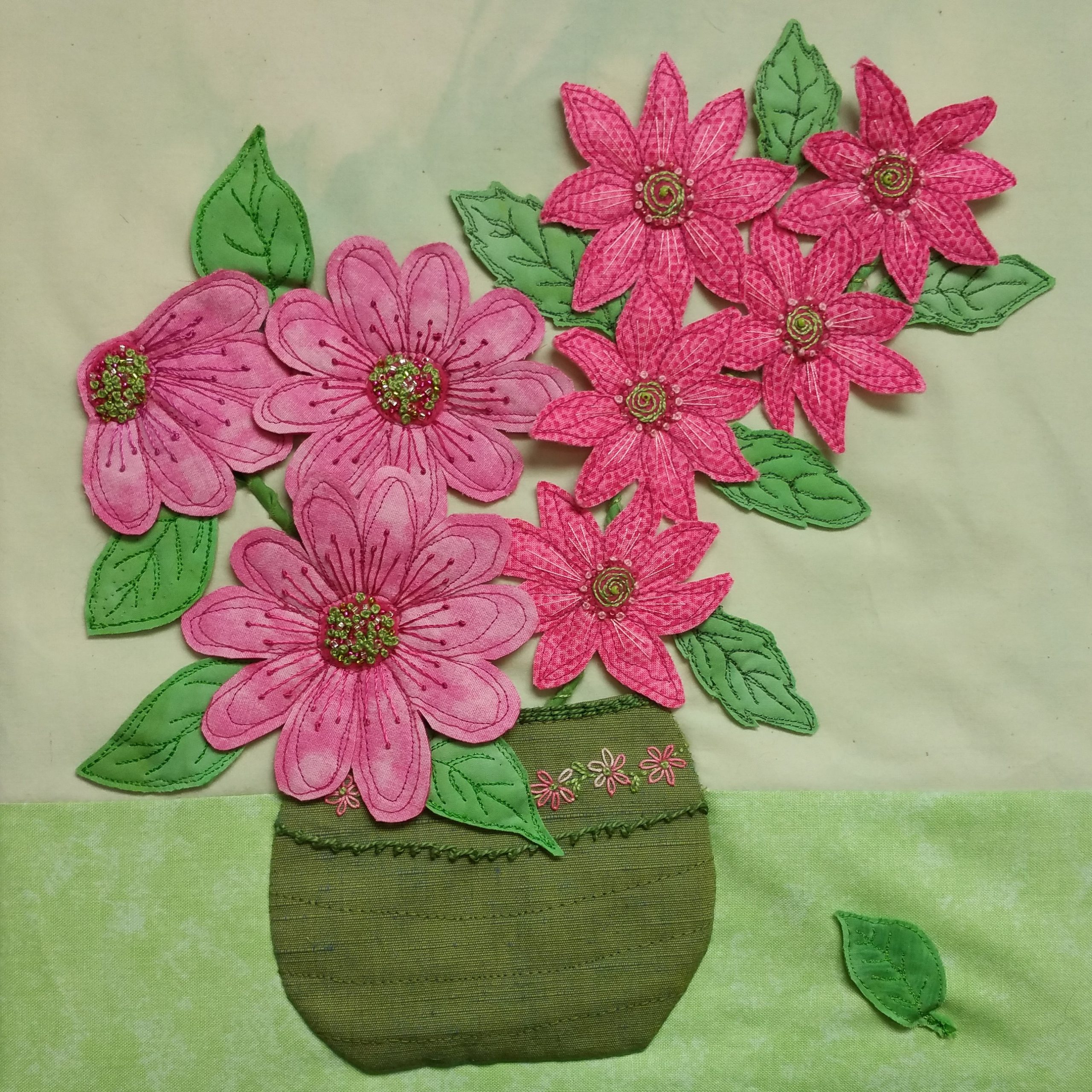 We plan to hold an exhibition in 2026 to celebrate 50 years of our group. We hope it will represent the very wide range of skills and interests within our group, from traditional hand-stitch, to machine embroidery, to mixed media. Wouldn’t it be nice to think that in another 50 years, new people will be holding another exhibition to celebrate what has happened between now and then? In the meantime, happy stitching!