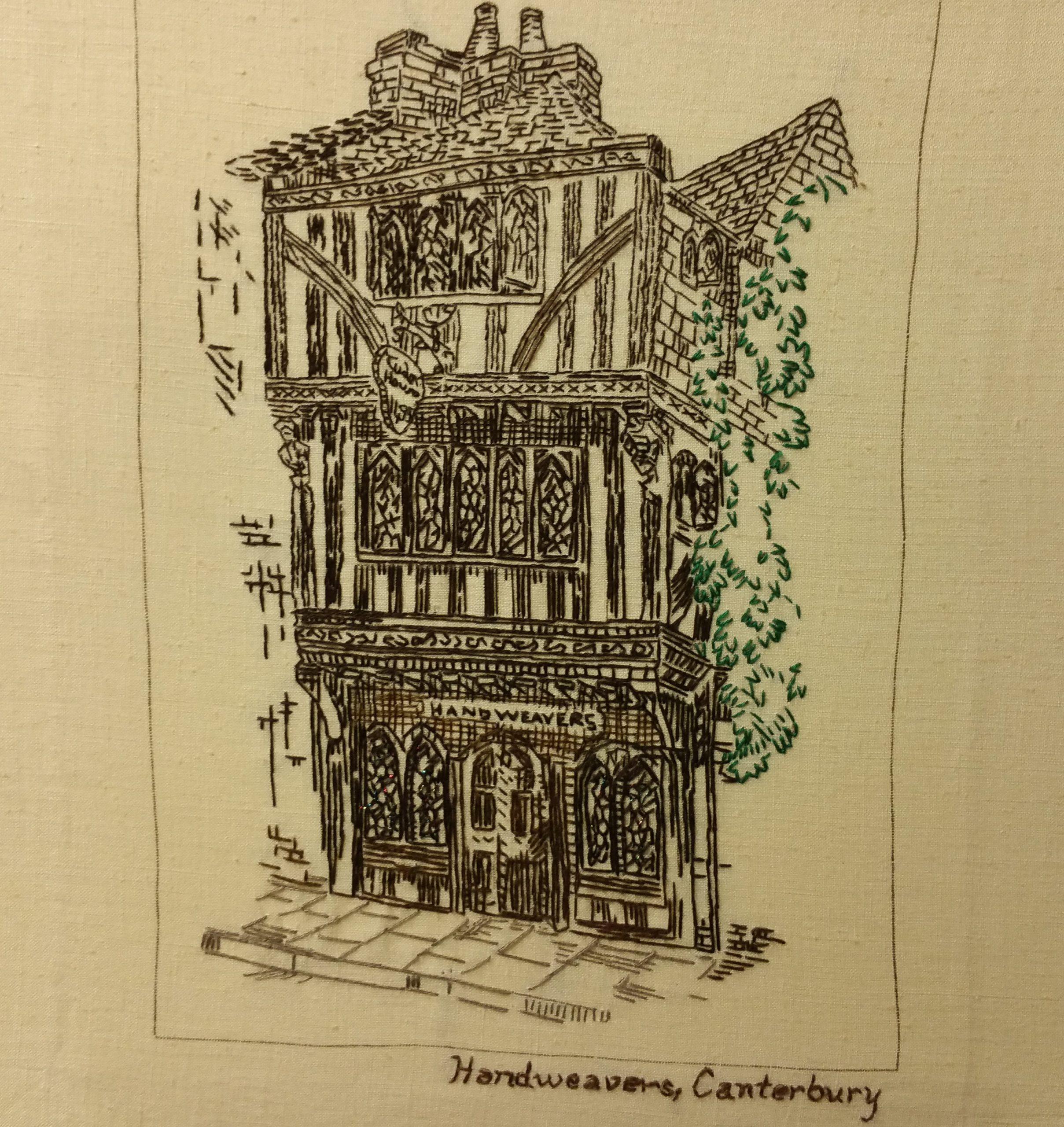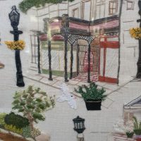 In 2004 the group presented Worthing Museum with an embroidery based on an old photograph of Warwick Street in Worthing. The embroidery was created by cutting up the photograph, and giving each small piece to an individual embroiderer who created their particular piece in stitch. It was then assembled into the right order and mounted onto a backing cloth. The names of the embroiderers are stitched on the back. The piece is now stored in Worthing Museum.