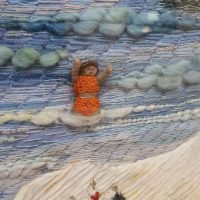 In 1997, the group undertook an enormous project called ‘The Worthing Embroidery’. This was a 10ft x 4ft6″ framed wall hanging for Worthing Hospital. It was part of an ‘Art in Hospitals’ project and was commissioned jointly by Worthing Hospital, Worthing Arts Council and by the Women’s Institute who helped to raised the funds. The idea was to make a detailed embroidery that represented diverse aspects of Worthing, including townscapes, sea, beach, local countryside, flora and fauna, landmark buildings etc.