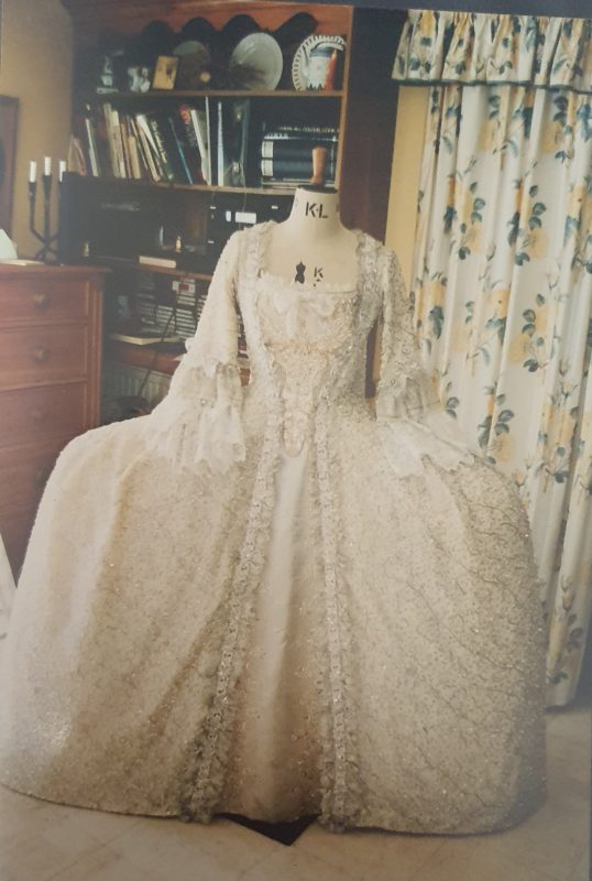 What a treat, at our last meeting, to hear Jane Law speaking about her work on costume design for film and stage. Jane brought some wonderful pieces of embroidery which were samples for some of the designs that went on to become costumes in well-loved films and shows. The detail is exquisite, even in the preliminary samples. Jane also had albums on display showing photographs of finished costumes, many of which were instantly recognisable.